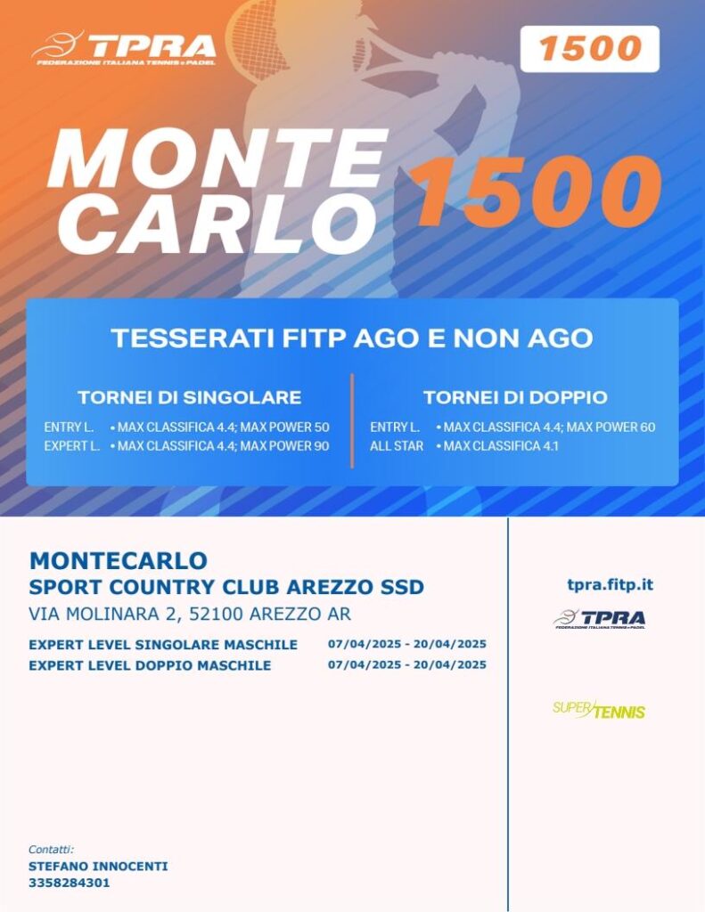 Nuovo Torneo di SINGOLARE MASCHILE e DOPPIO MASCHILE categoria Expert Level del circuito...